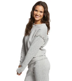 Warm up at the studio or run some errands in the Onzie Cozy Raw Seam Crew Pullover.Â